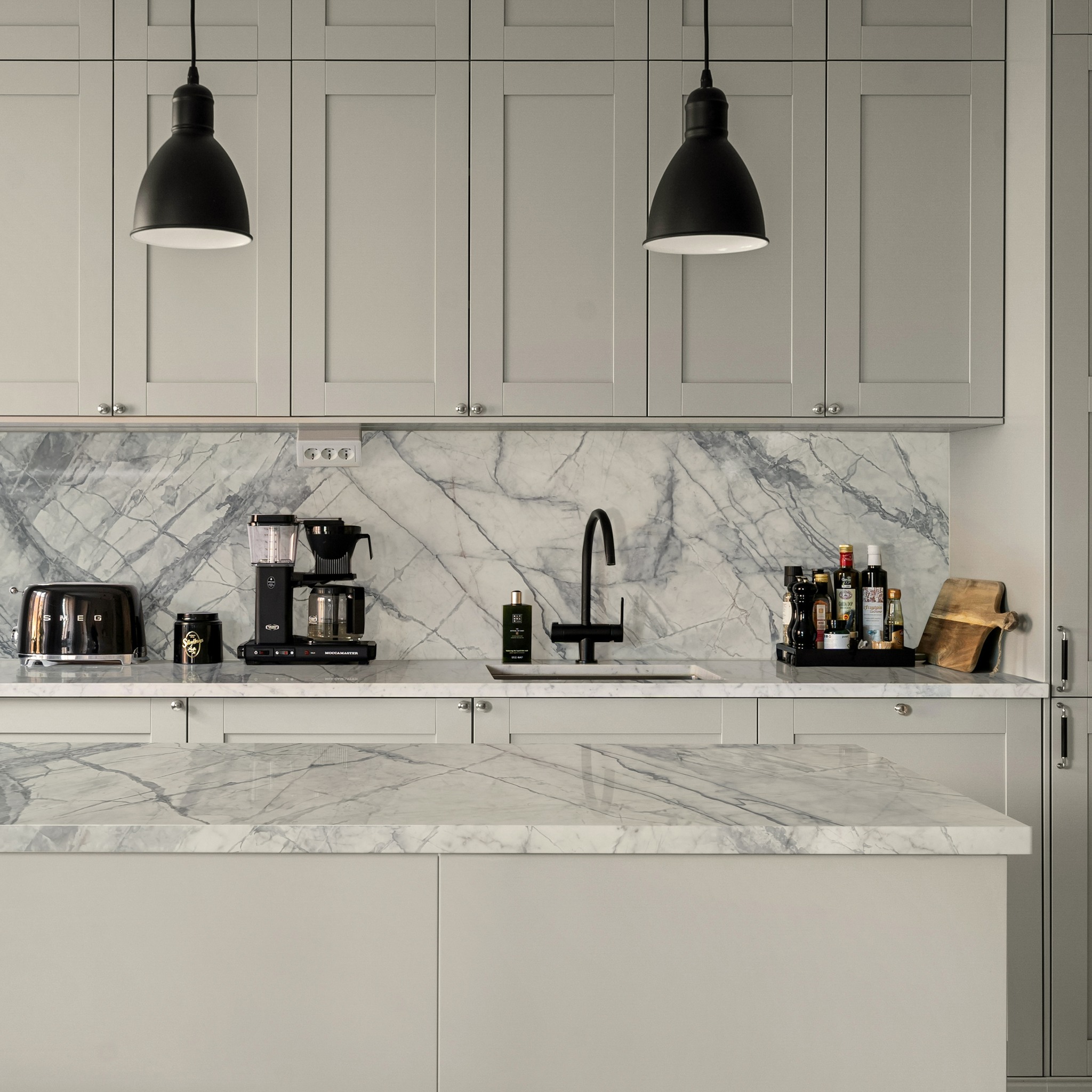 Legato Grey U-Quartz by UGM Surfaces is an engineered stone featuring a silver-grey backdrop with intricate blue-grey and taupe veining, inspired by Turkish Invisible Grey marble. This versatile, polished material is suitable for residential and commercial applications like countertops and feature walls.