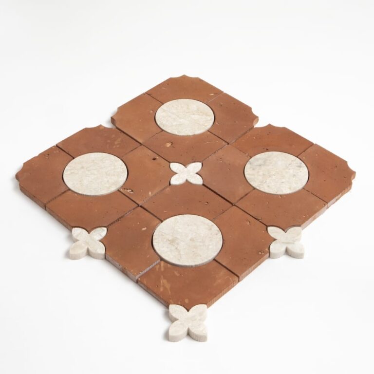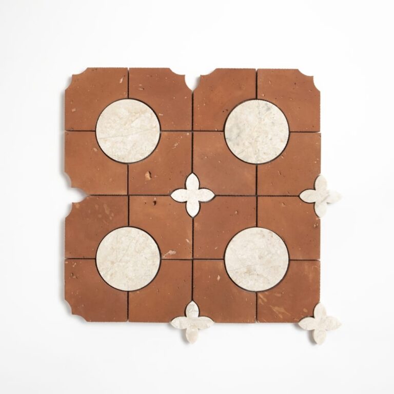 Enhance your space with this exquisite piece from the Fiesole Mosaico Collection. This Bocciolo mosaic beautifully blends the rustic allure of terracotta with the timeless elegance of marble, echoing the artistry of ancient Italian craftsmanship inspired by the villas and piazzas of Fiesole. The honed finish provides a smooth, matte surface that showcases the natural beauty of the stone without excessive reflection. Each sheet covers approximately 0.93 sq. ft. and is suitable for interior walls, floors, shower walls, and decorative applications. Whether adorning a kitchen backsplash, bathroom wall, or accent floor, this mosaic brings warmth, history, and refined elegance to any space.