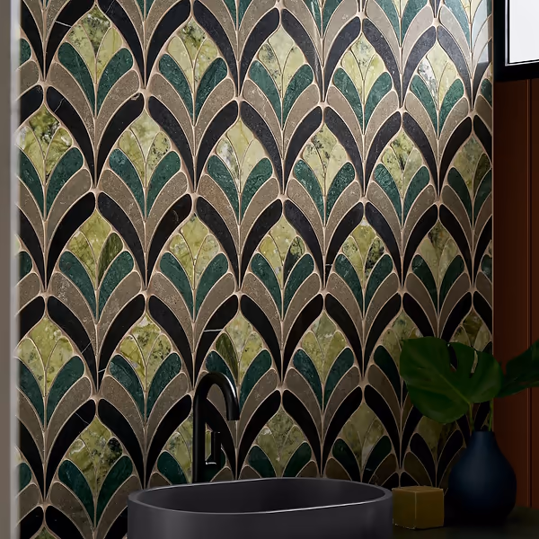Rosalia Verde Green Floral Marble Mosaic Tile